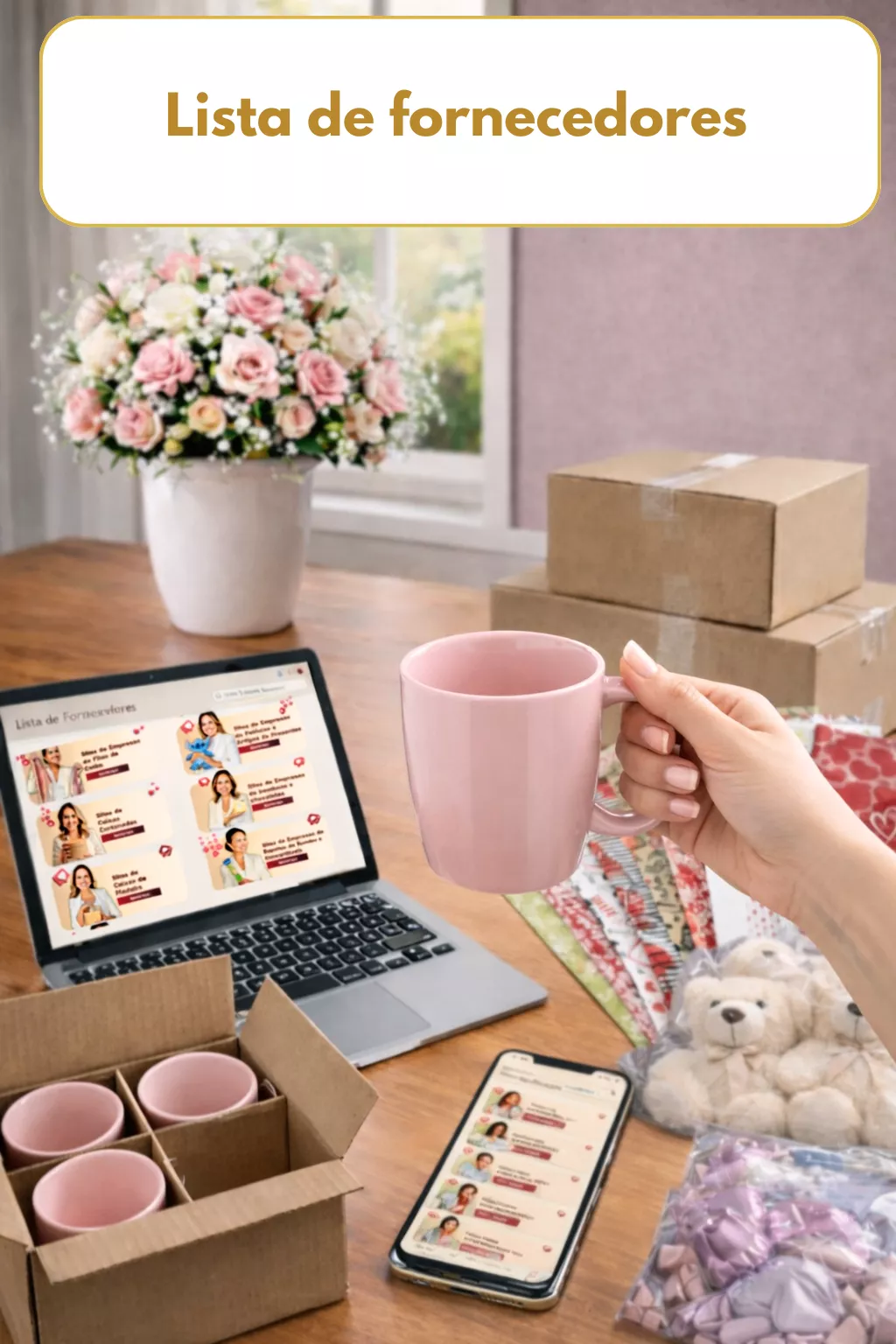 Transforme o buquê na caneca em renda extra de verdade no dia a dia.